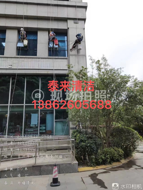 昆山市花橋高級中學(xué)校園高空幕墻清潔